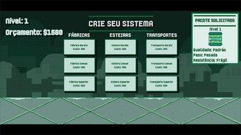 Neste desafio de estratégia e engenharia, você assume o controle de uma linha de produção inteligente, onde cada decisão impacta o desempenho do sistema! Seu objetivo: otimizar processos, reduzir desperdícios e maximizar a eficiência para cumprir encomendas complexas sob pressão.